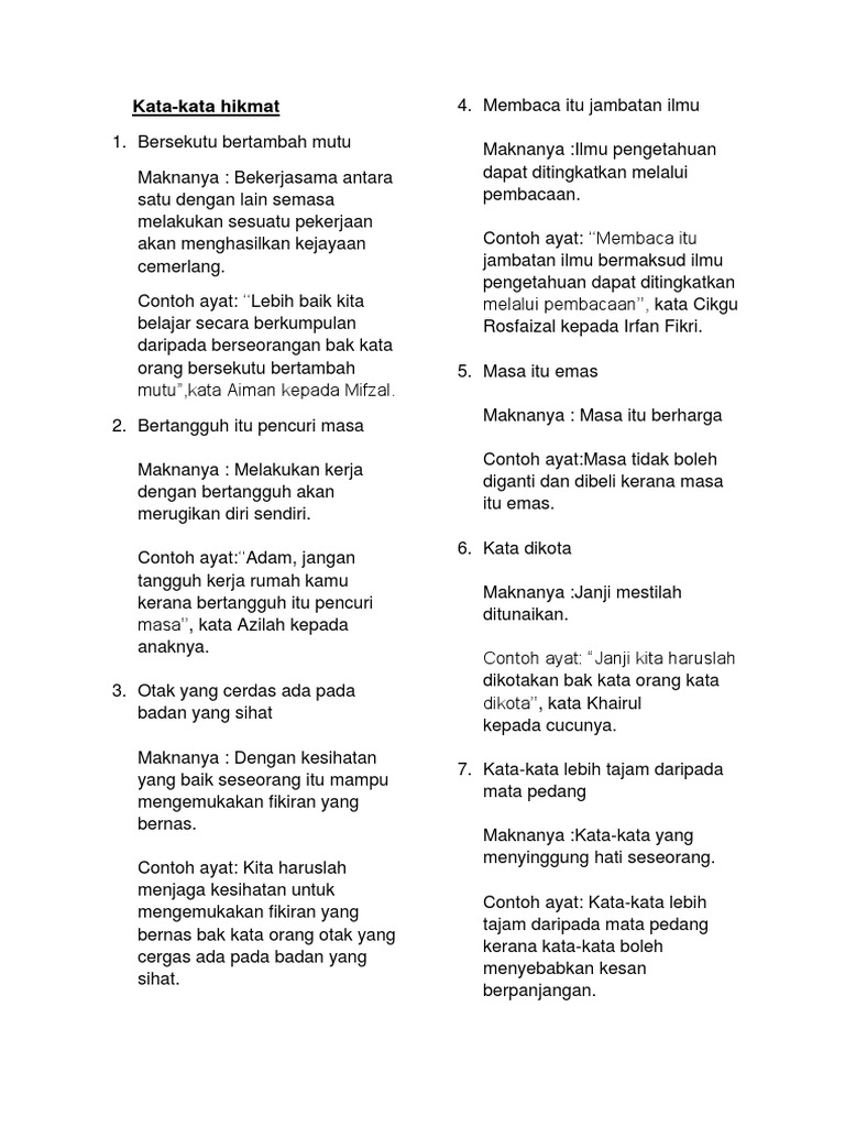 Kata-kata hikmat - Faktanya bahwa karunia ini disebut sebagai kata hikmat. KATA-KATA HIKMATPUJANGGA DIGUNAKAN DALAM KARANGAN. Perniagaan Ekonomi Pendidikan Seni Visual PSV Pendidikan Islam Pendidikan Moral Tasawwur Islam Geografi Pendidikan Jasmani dan Pendidikan Kesihatan PJPK.